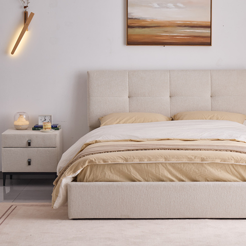 Camas tapizadas tamaño king de madera Europea Marco de madera moderno Dormitorio de estilo suave