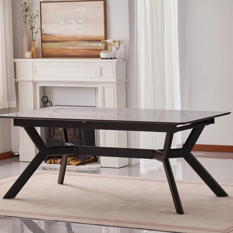 Table à manger extensible moderne 6-8 places Table à manger rectangulaire avec pieds en acier noir enduit de poudre