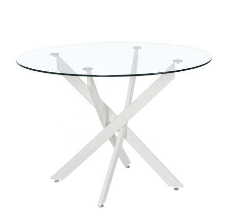 Offre Spéciale échantillon classique stable moderne Meubles en métal table verre blanc ronde à manger table avec pieds en métal