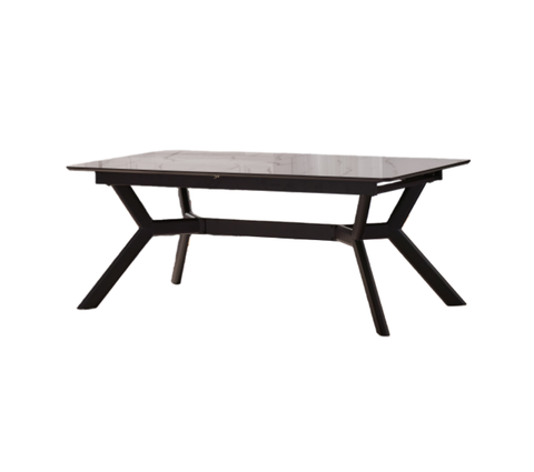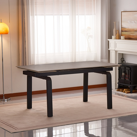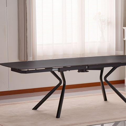 Moderne 6-8 Zits Uitschuifbare Eettafel Rechthoek Eettafel Met Zwart Gepoedercoate Poten