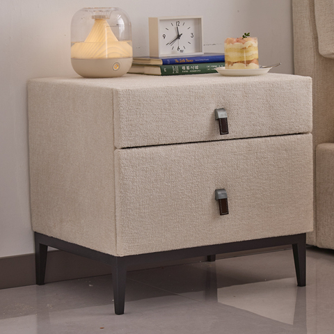 Hiện đại nổi bề mặt bàn cạnh giường ngủ hai ngăn kéo sơn mài đầu giường với vàng brass xử lý